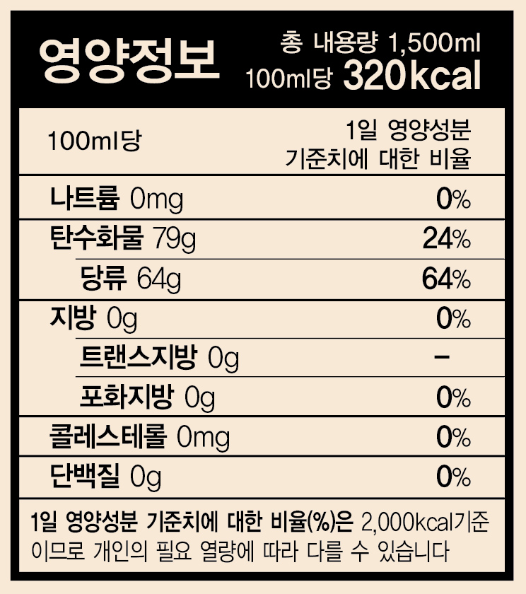 원재료명및함량 액상과당,정제수, 백설탕,맥아추출물, 아세설팜칼륨(합성감미료),글리신, 구연산